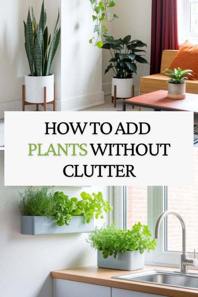 Incorporate plants into existing furniture rather than adding new pieces. Place trailing plants on top of tall bookshelves, use plant stands that double as side tables, or choose planters that serve as room dividers in studio apartments.
