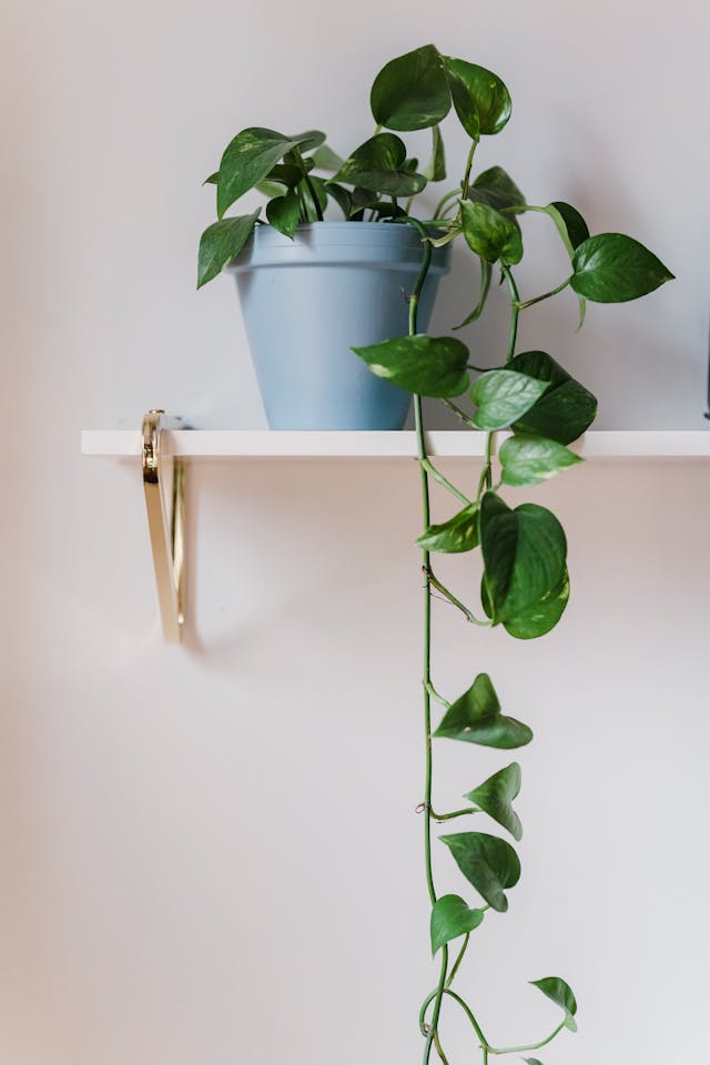 Pothos is a fast-growing vine that removes formaldehyde, xylene, and benzene. It’s forgiving, adaptable, and looks stunning trailing from a shelf or climbing a moss pole.