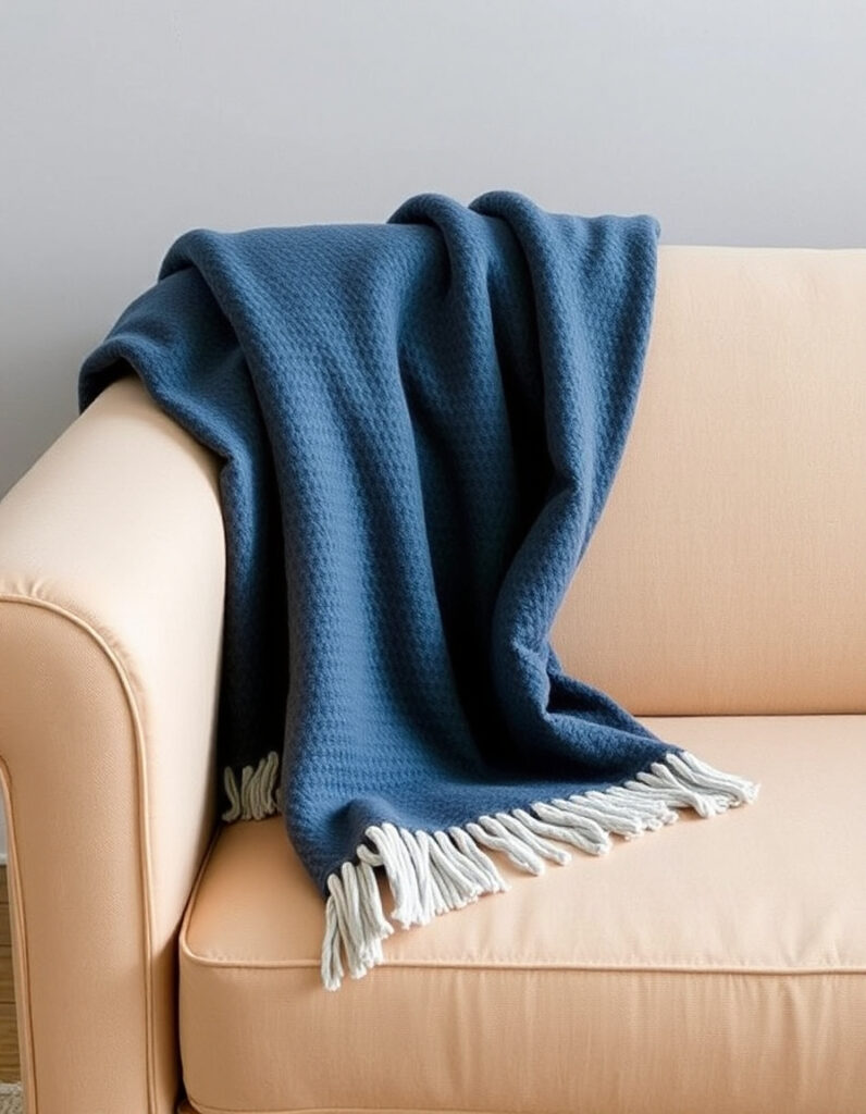 The size of your throw matters significantly. Standard throws measure 50 x 60 inches, which works well for most sofas and chairs. Larger throws (60 x 80 inches) suit sectional sofas, while smaller ones (40 x 50 inches) work better for accent chairs.