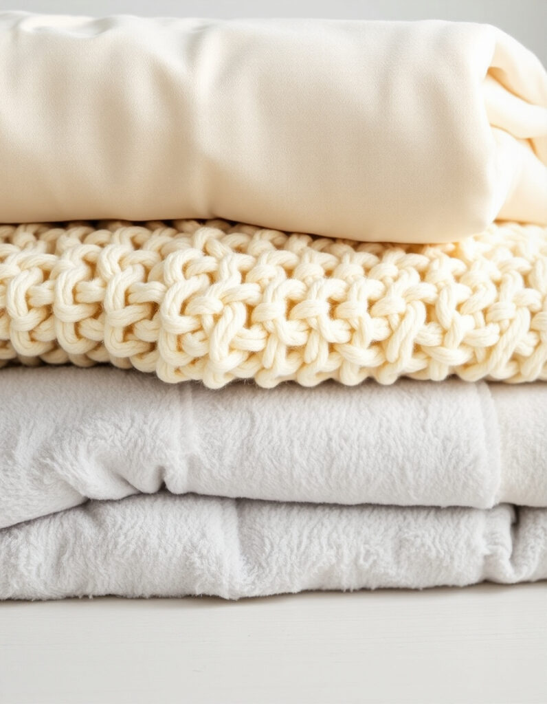 Store off-season throws in breathable containers to maintain their shape and prevent odors. Cedar blocks or lavender sachets help protect natural fibers from pests.