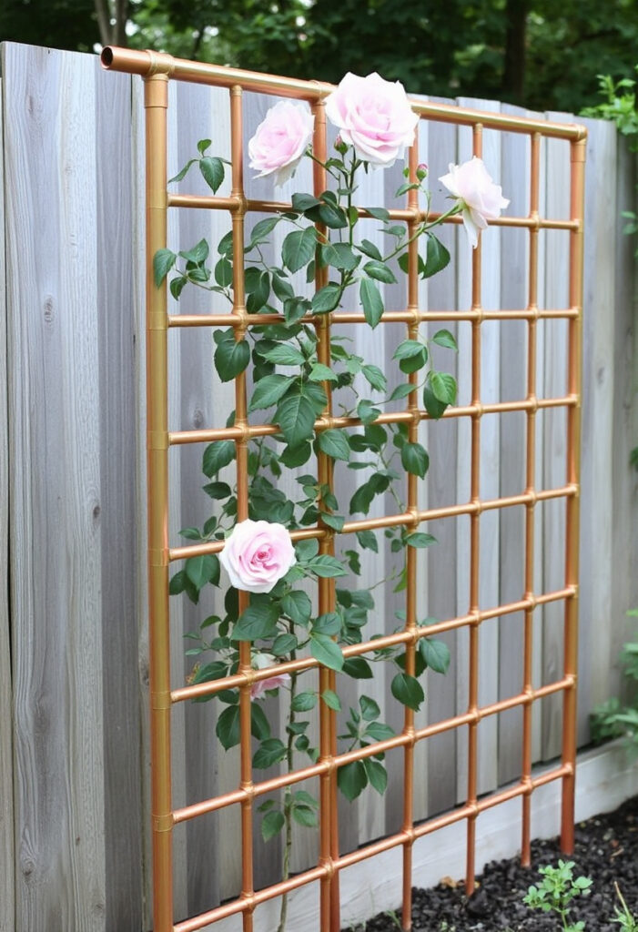 Copper pipe systems create durable rose-covered trellises with distinctive appearance that develops natural patina over time. These structures offer excellent corrosion resistance and can be configured in countless designs using standard plumbing fittings.